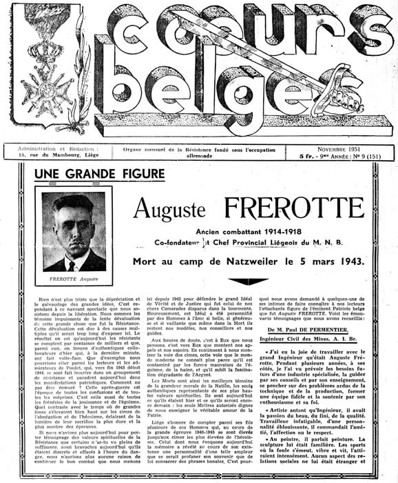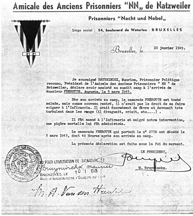 Read a great article about Auguste Frerotte, Belgian war hero and one of the very first Nacht und Nebel prisoners at the camp,