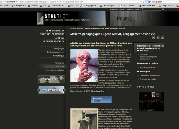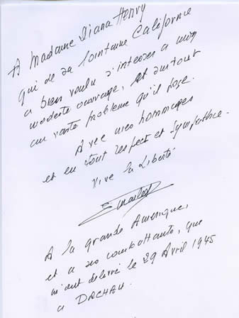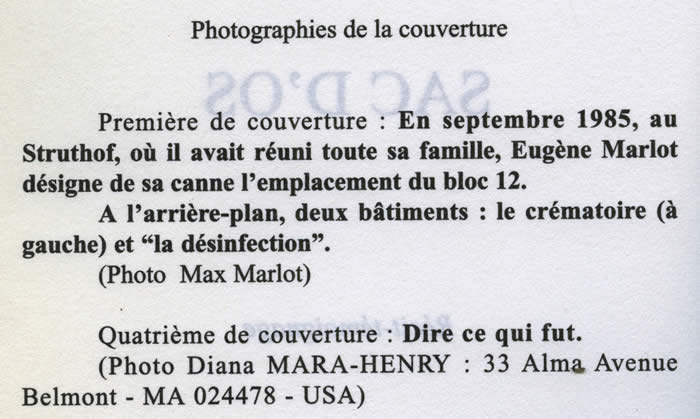 He later wrote the unofficial guide for Natzweiler-Struthof, L'Enfer d'Alsace-The Hell of Alsace which has been translated by Diana Mara Henry and is available by contacting dmh@dianamarahenry.com.