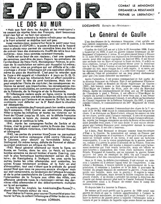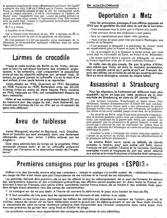 Note: The Musée de la Résistance et de la Déportation in Besançon has a most impressive display of underground publications in Occupied France.