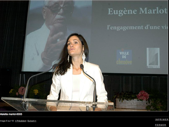 The poster below right is for a new exhibit in Strasbourg about Marlot. At left,, in 2013, Frédérique Neau-Dufour, Director of the Centre Européen de la Résistance et de la Déporttaion (CERD) the museum of Natzweiler-Struthof, spoke in front of an image of Marlot photographed by Diana Mara Henry at ceremonies kicking off the publication of a study guide ("Malette pédagogique") about him.