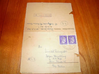 "Dear Danica! Up to now I have received two parcels through the Red Cross. The others I have received from Francka. Here you have my new address. Please write to me, it is permitted to send food and cigarettes. Dear wife, send me a parcel very soon. How are Andrejka, Mateja and Marko? I hope that you are all well, and how are you and my mother? Best regards to Francka and to my relatives. In anticipation of early news from you I remain with regards and kisses for you and the children.