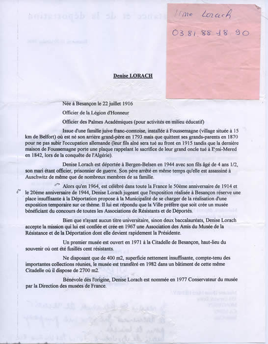 Denise Lorach, talented and generous founder of the remarkable Museum of the Resistance and the Deportation in Besançon, and a relative: