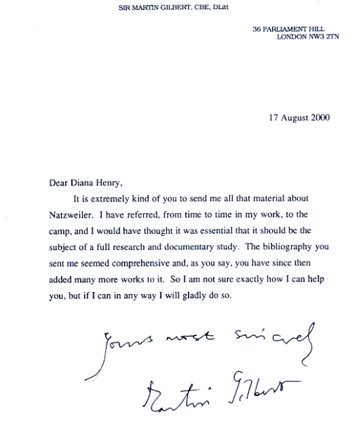 Yours most sincerely, Martin Gilbert (Sir Martin Gilbert, C.B.E. D. Litt.)