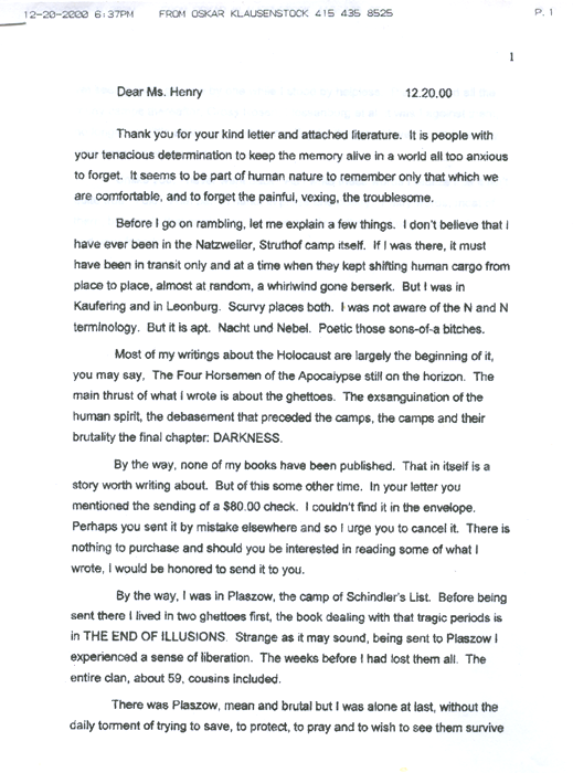 Klausenstock was the only one of 38 family members to survive the Holycaust.