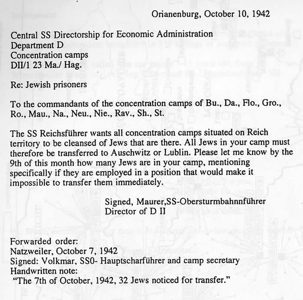 After the Wannsee conference officially determined the extermination policy of the Third Reich in 1942, all the concentration camps were ordered "cleansed of Jews" and sent to the killing centers at Auschwitz and Lublin.