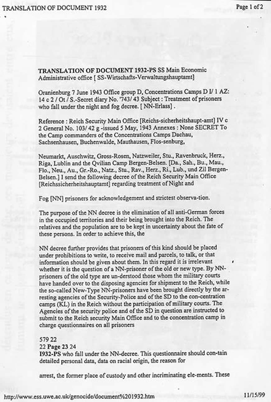 Hirt disappeared after the war, but the documents associated with this atrocity were presented in evidence at the Nuremberg trials and collected in the Nuremberg trial volumes: