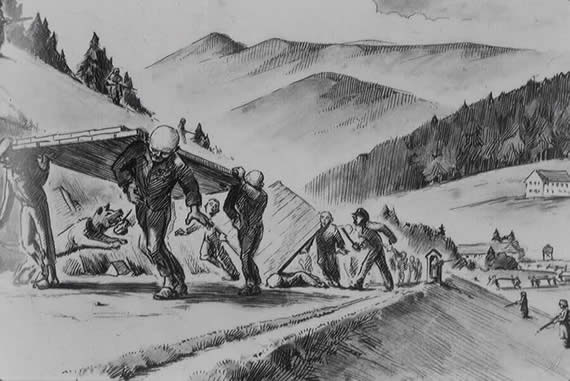 Drawings by survivor Henri Gayot of Natzweiler-Struthof concentration camp prisoners building the road to the camp