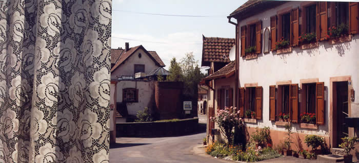 Natzwiller, as the Alsatian spelling gives it, is a lttle town. Le Struthof is a farmstead and overlook of the valley where there was a ski resort and inn before WWII, and where, during the war, the inn continued to serve guests who could watch naked Jews and Gypsies being led into the gas chamber across the street. ( see Judy Chicago's Holocaust Project for more on this.)