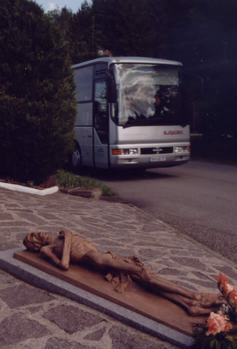 At the entrance to the parking lot a statue greeted visitors; today it is displayed within the museum that opened on site in 2005, the Centre Européen du Résistant Déporté/ CERD.