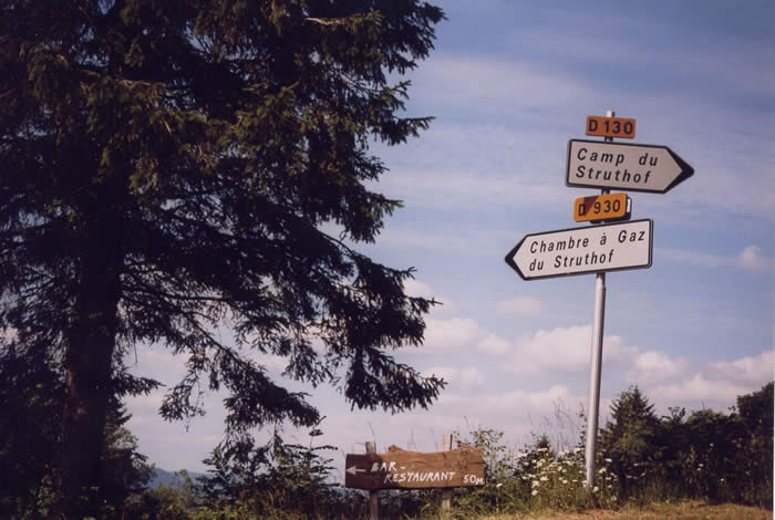 Natzweiler Signposts To the Concentration camp (known as Le Struthof, in France) and in another direction, to the Gas Chamber,