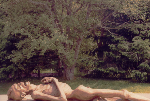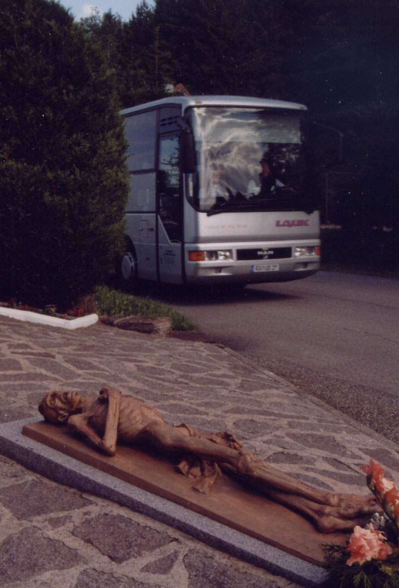 The bus parks at the Konzentrationslager Natzweiler (KLNa) and a statue is there. Photo and text Copyright © Diana Mara Henry.