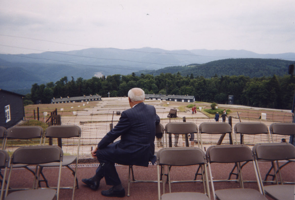 A survivor contemplates what's left of the camp where he was imprisoned. Who can imagine what scenes are pssing through his mind? Photo and text Copyright Diana Mara Henry.