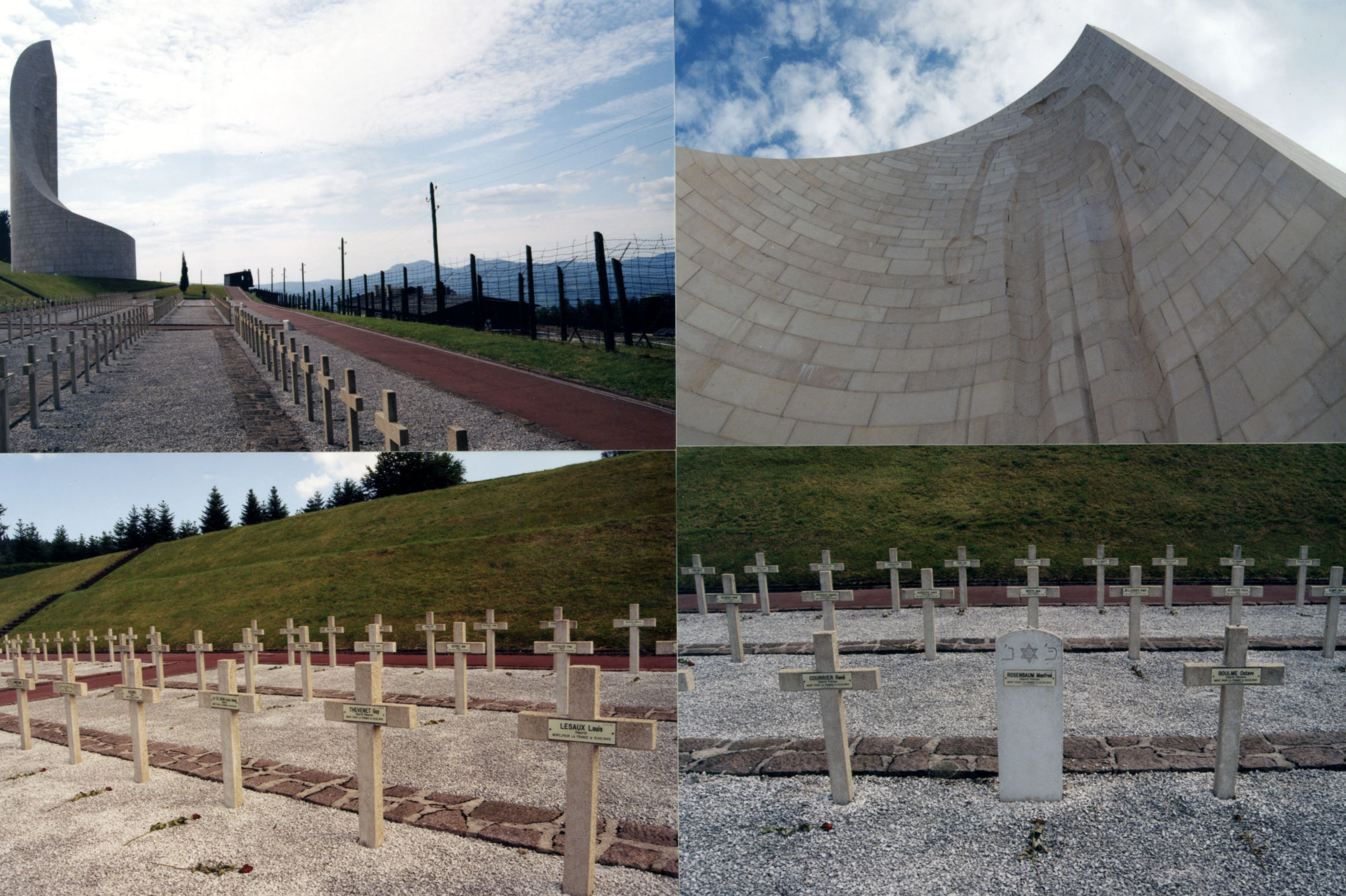 Above the barbed-wire encircled compound where the barracks housing the prisoners used to stand, the monument to the dead stands, with rows of gravestones for French nationals who died in the many Nazi concentration camps, not just at Natzweiler. There are some Jewish stars in among the crosses.Photos and text copyright Diana Mara Henry.